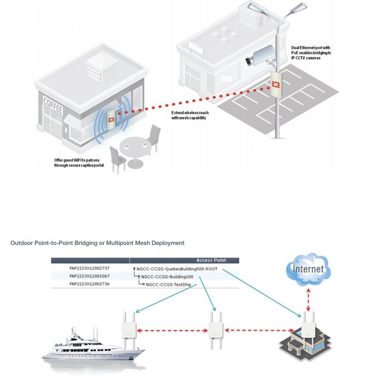 Los puntos de acceso WLAN exteriores FortiAP son productos robustos diseñados para su instalación en entornos físicos hostiles. Los FortiAP al aire libre pueden proporcionar acceso al aire libre a los clientes cuando se implementan en modo AP, o se pueden usar como un cliente de malla inalámbrica para permitir el puente o la cobertura punto a multipunto para áreas al aire libre grandes. Algunos modelos están equipados con conectores de antena externos para admitir el uso de antenas direccionales o de panel, y los modelos de puerto dual cuentan con PoE pass-through para alimentar cámaras IP CCTV.